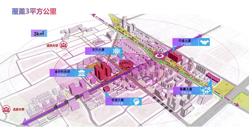 北京AI原点社区以“创新策源、创业首选”为特色定位,打造“全球AI人才创新创业第一站”,突出技术策源、人才集聚、生态赋能,建设成为AI原创策源技术的全球首发地、AI青年人才共创共燃的栖息地、AI全要素精准对接的生态服务站。社区以五道口区域为核心,发挥高校院所、创新主体密集优势,突出“清华+北大+中科院+智源+奇绩创坛+N个创新企业”的独一无二生态聚合效应,整合东升大厦、清华科技园、智源大厦等载体,总面积约3平方公里,同时辐射带动区域涵盖学北园、东升三期和京张铁路遗址公园人工智能产业创新带。