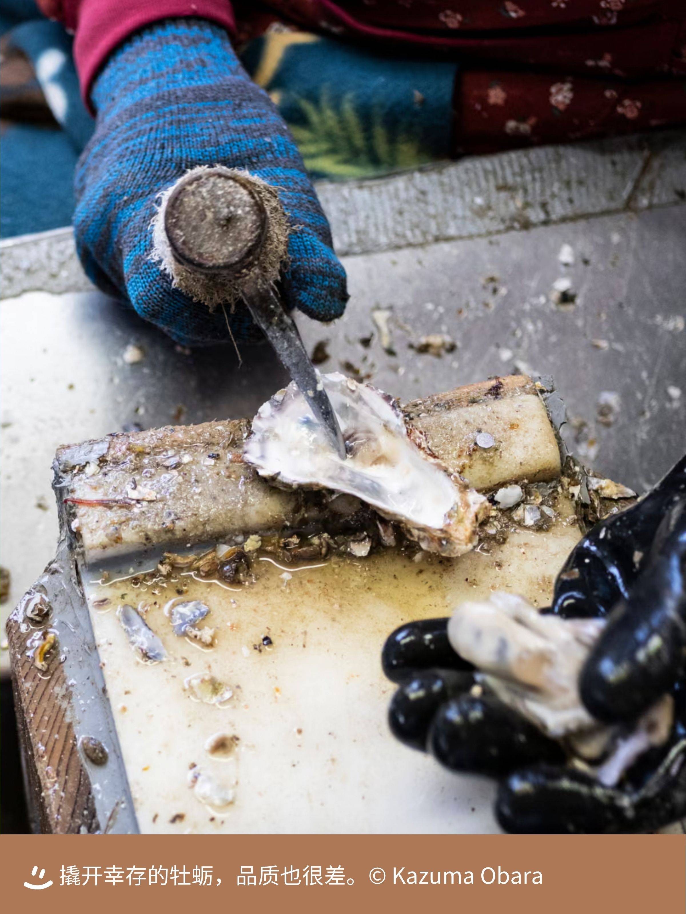 Niina 在广岛县经营小型渔场,拥有约 10 年的牡蛎养殖经验,他的父亲已经在这个行业里工作了半个世纪。Niina 说:“这很不寻常。而且,即使存活下来的牡蛎,很多也状况很差……它们的品质不够高,无法卖给商店和餐馆。这已经开始对我们的经济造成影响了。”