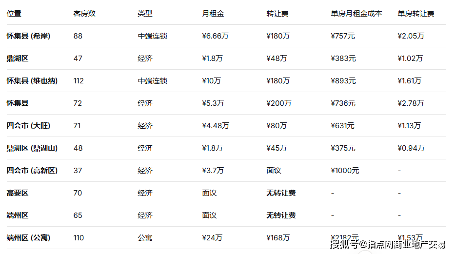 · 无转让费模式出现:高要区和端州区出现了“无转让费”的出租或合作模式,极大地降低了投资者的初始资金门槛,适合轻资产运营或首次进入酒店行业的投资者。