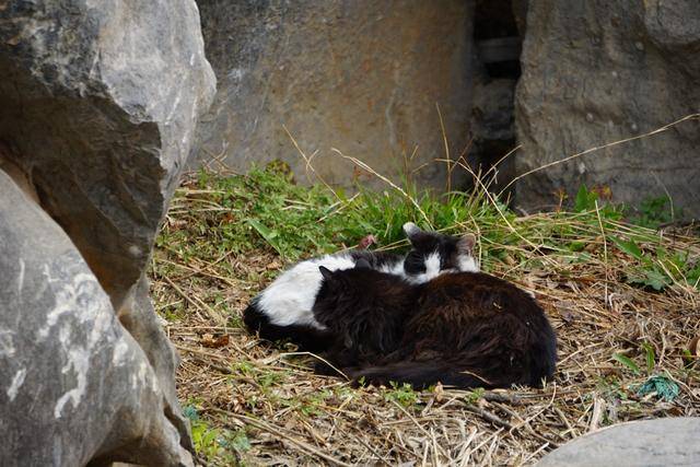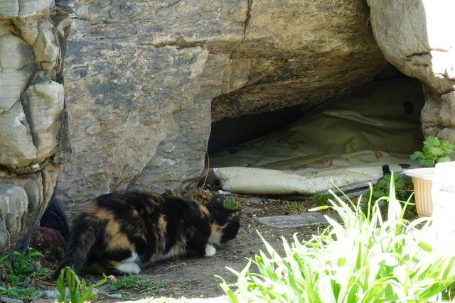 春天的北京,阴晴不定。早晨的阳光被乌云遮盖,气温偏低,朝阳区官庄公园一处假山中间,两只流浪猫聚拢在一起,像是抱团取暖。不远处,有一座人工搭建的小屋,透过小屋的门窗,能看见里面的猫粮。
